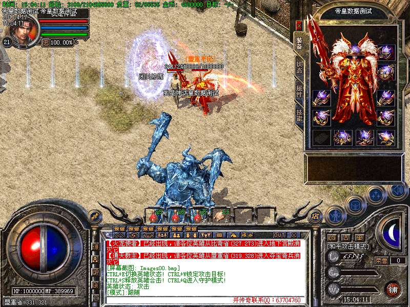 各种活动:在苍月岛,每小时会出现一只魔王,杀死魔王获得它的首级后,上交给丞相可获得1000元宝,或上古遗物一件
