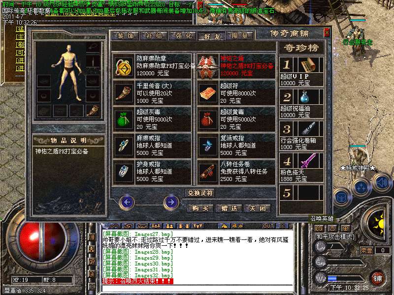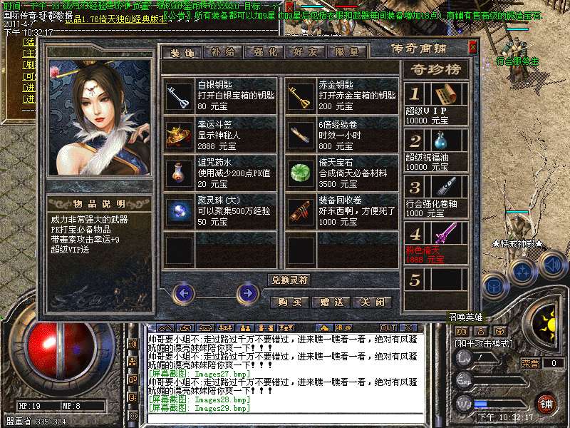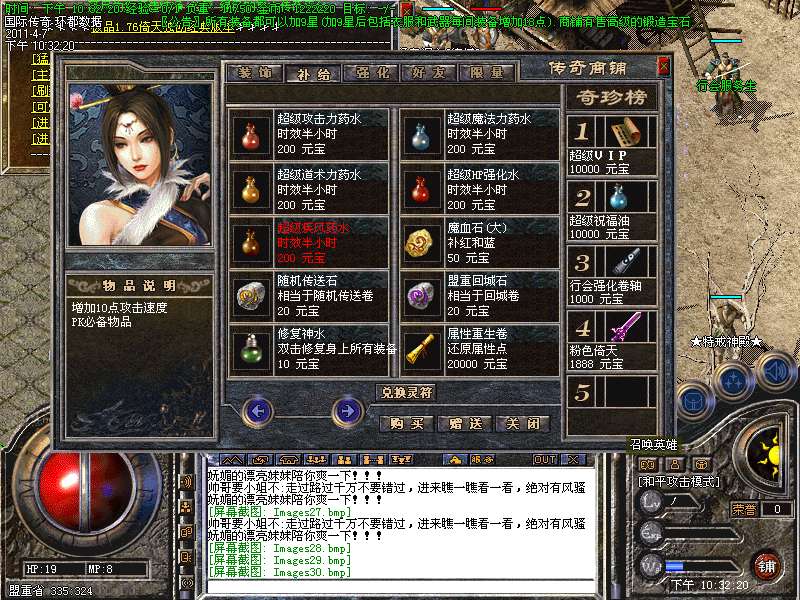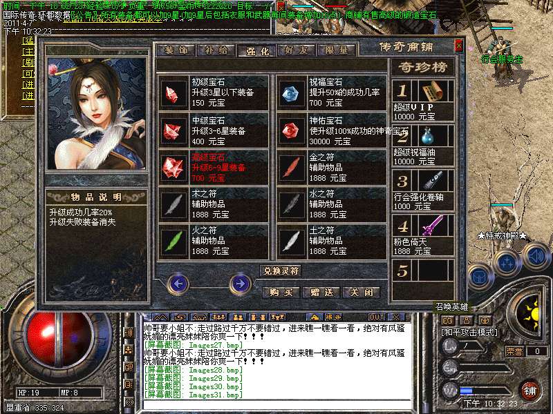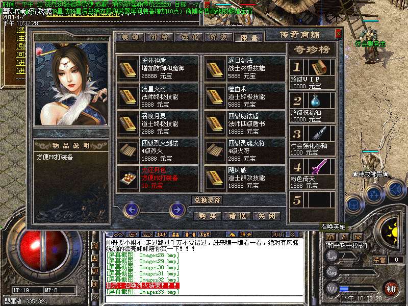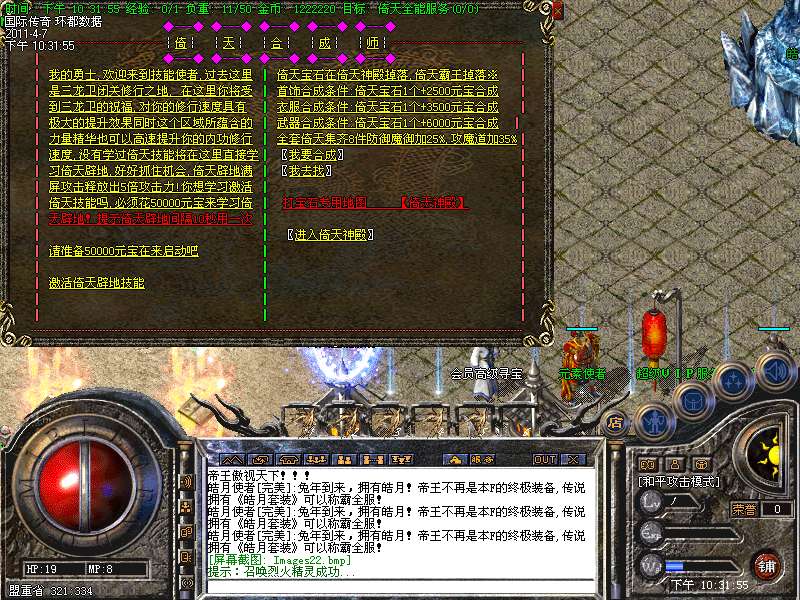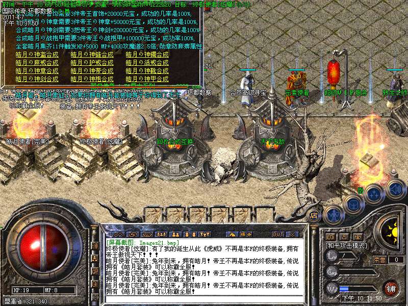 四:进入各类元宝传送地图爆高级装备。(帝王、号令、皓月)