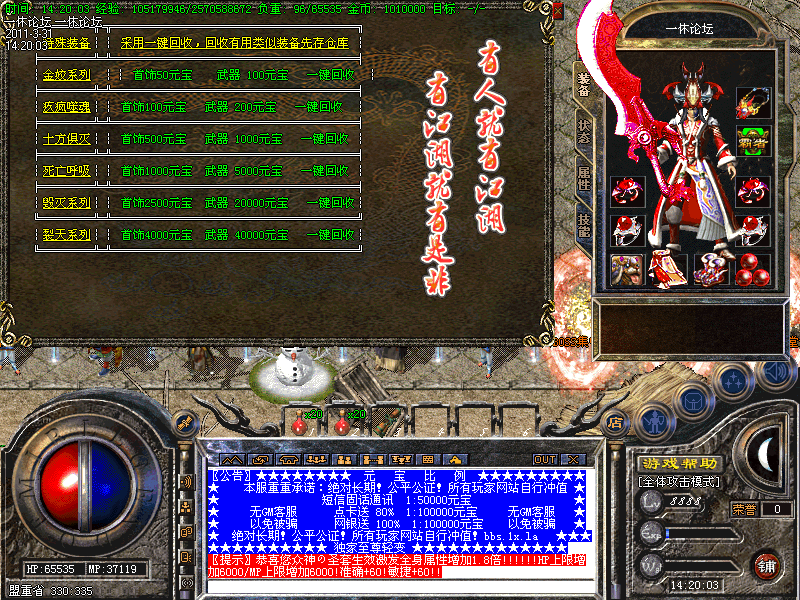 大量元宝.高级装备.技能书