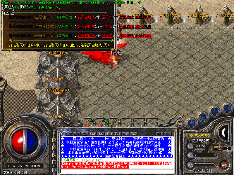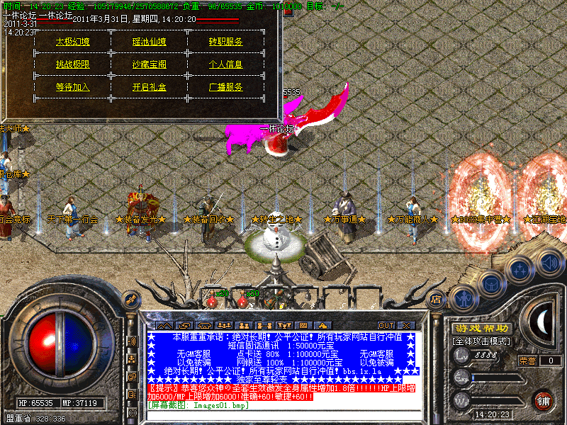 到土城泡点.点击NPC开始泡点.得到血祭套后.再领取一直年兽就可以去免费地图『极限寻宝』.『水上世界』打怪寻宝了,大怪小怪都可以轻松打到毁灭装备,元宝轻轻松松由此回收而来!这个是基本的新手路线! !