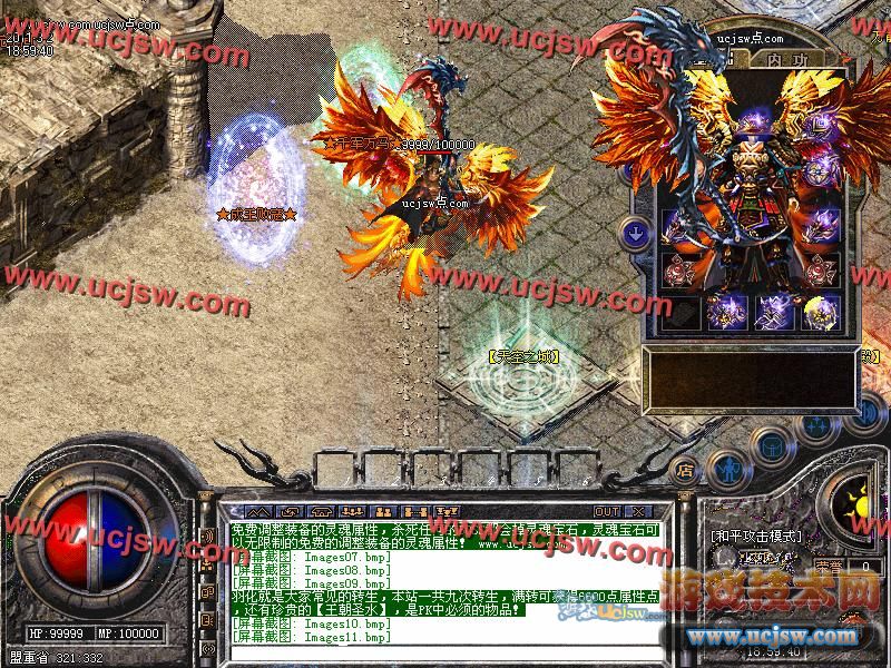 羽化就是大家常见的转生,本站一共九次转生,满转可获得6600点属性点,还有珍贵的【王朝圣水】,是PK中必须的物品!