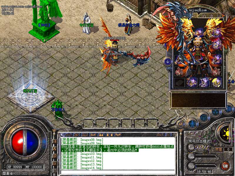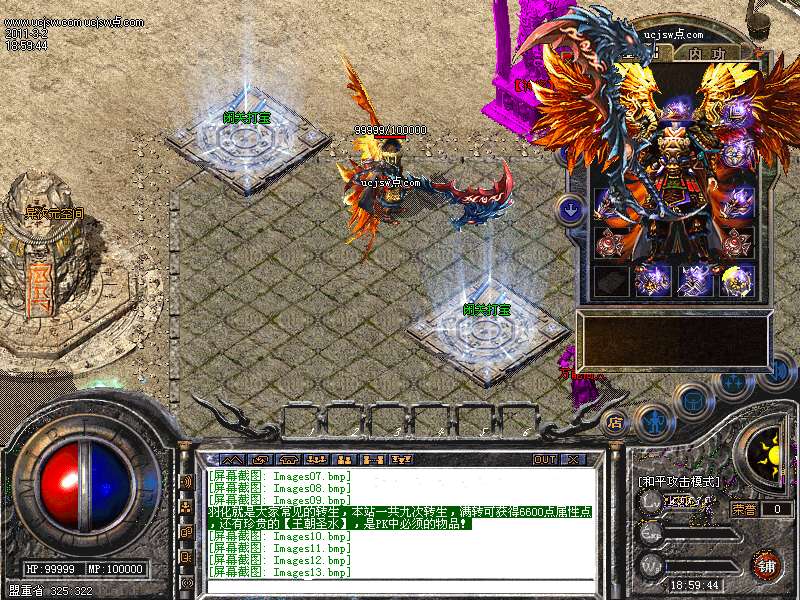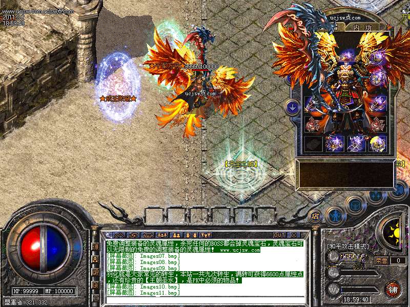 羽化就是大家常见的转生,本站一共九次转生,满转可获得6600点属性点,还有珍贵的【王朝圣水】,是PK中必须的物品!