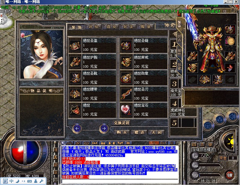 【元宝服务】最新推出元宝系统功能,元宝兑换各种特殊物品及服务.<装备改名>.<元宝购物>.<神的恩赐>等等....