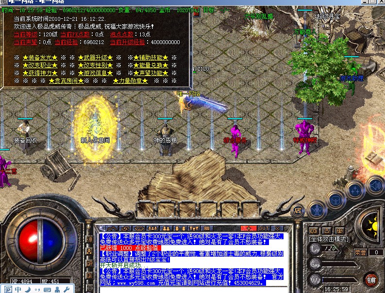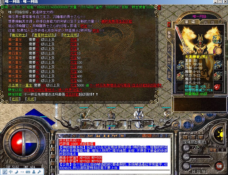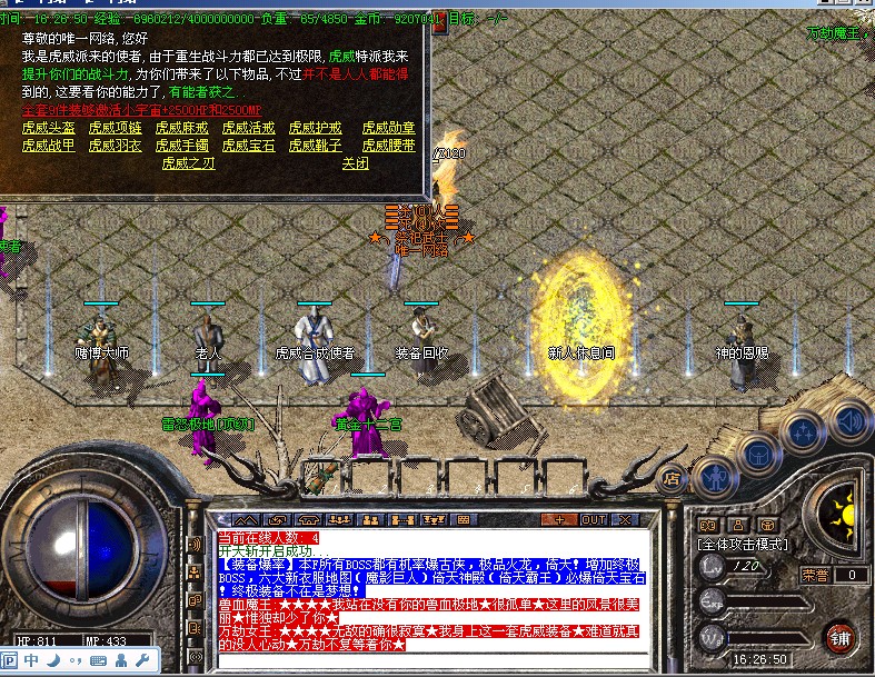 【神的恩赐系统】玩家可以在元宝商店使用获得<神的恩赐>,短暂的时间内激发自身潜能力量.增加人物死亡提示地图.坐标.方便丢了装备的快速找到该地点.