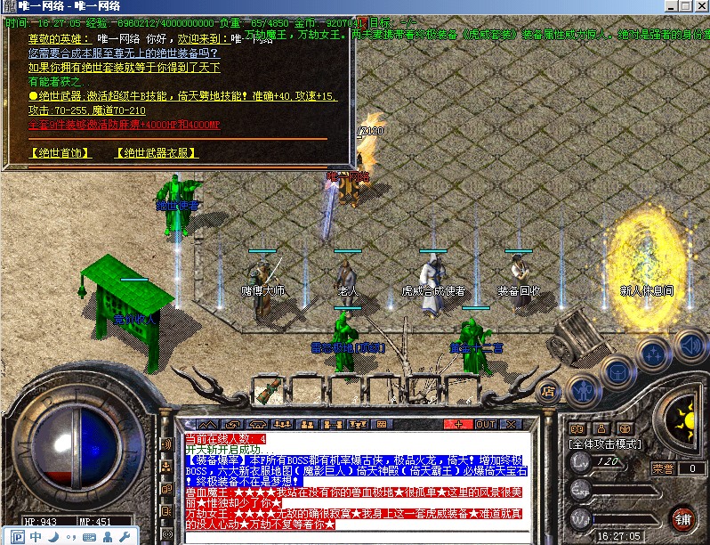 【公告】各个安全区自动喊话的NPC都是假的,系统喊话是红字和蓝字,所以请玩家特别注意不要上当.本服唯一客服453004629