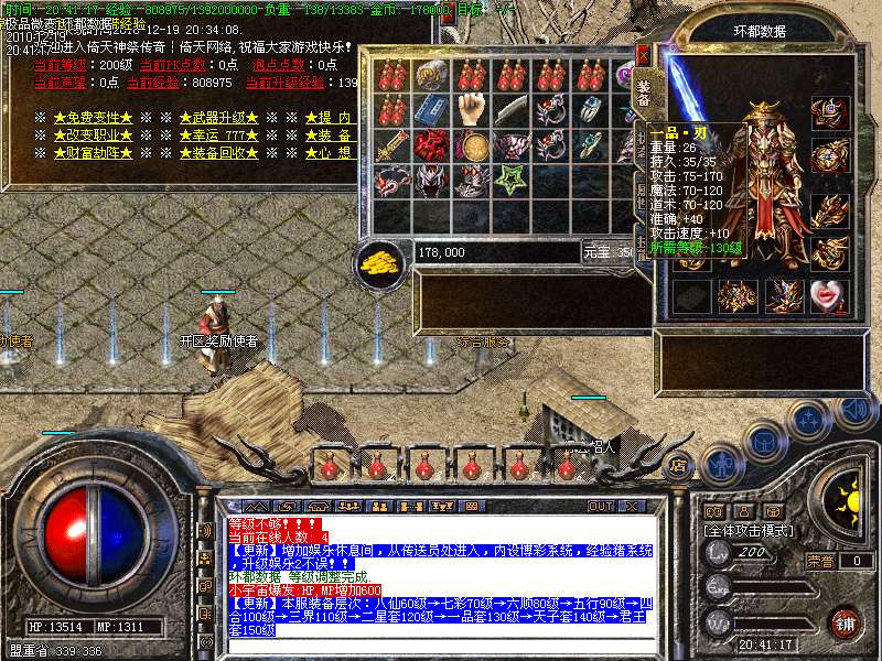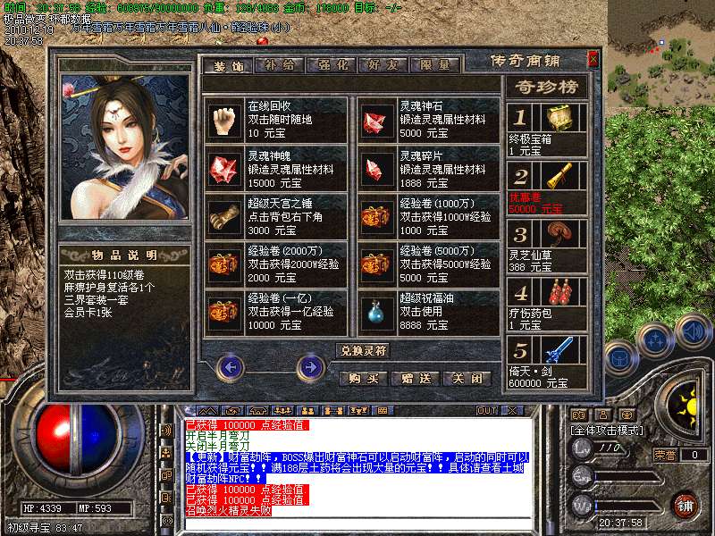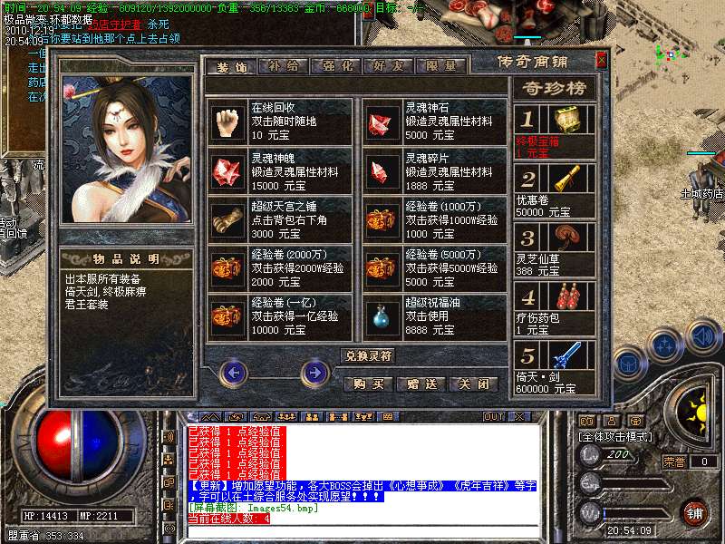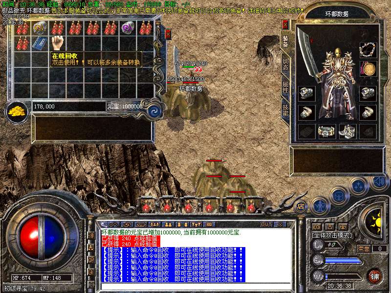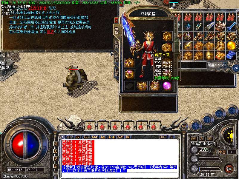 【更新】增加闭关博彩室,从传送员处进入,内设博彩系统,自动泡点可得10W经验每秒!!