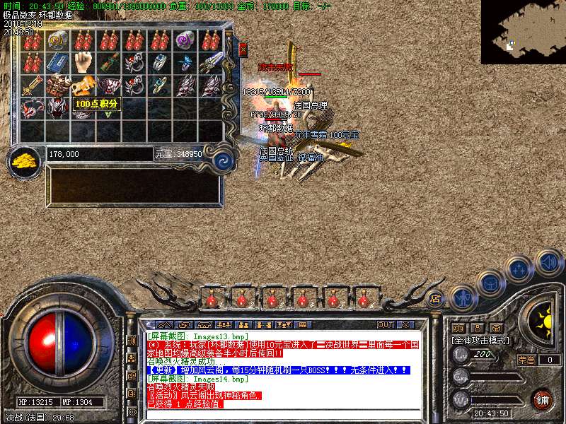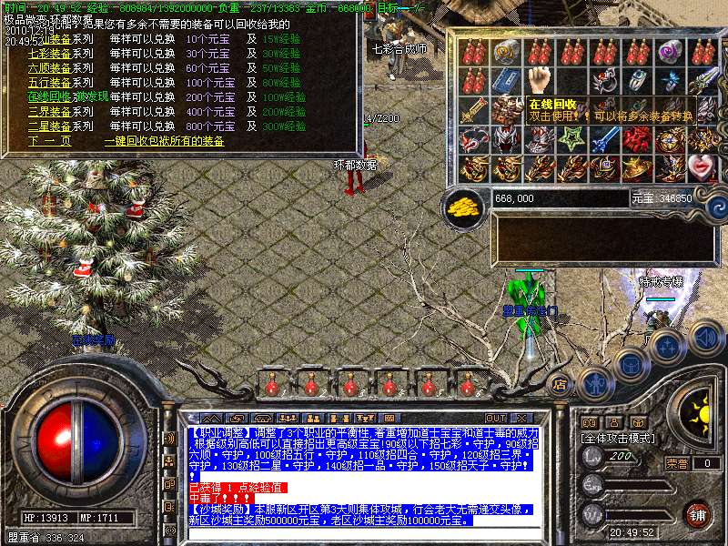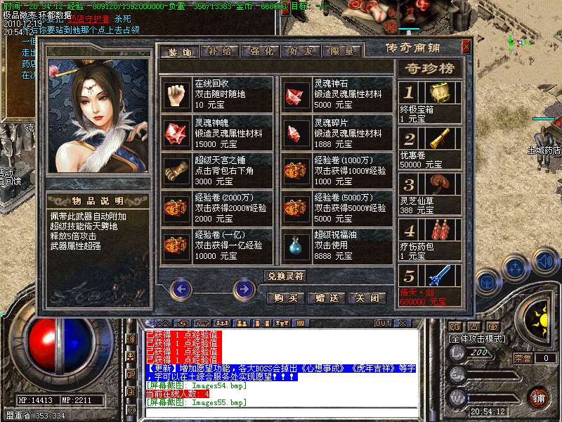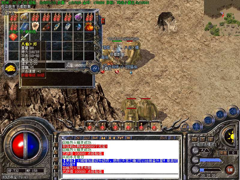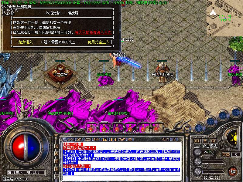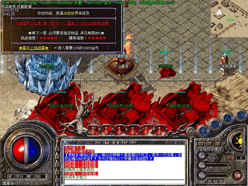 【更新】财富劫阵,BOSS爆出财富神石可以启动财富阵,启动的同时可以随机获得元宝!!满188层土药将会出现大量的元宝!!具体请查看土城财富劫阵NPC!!