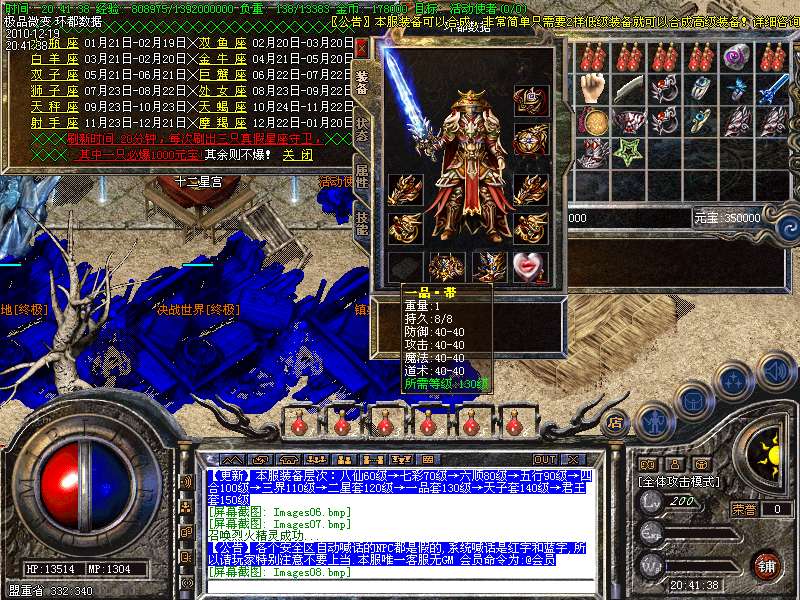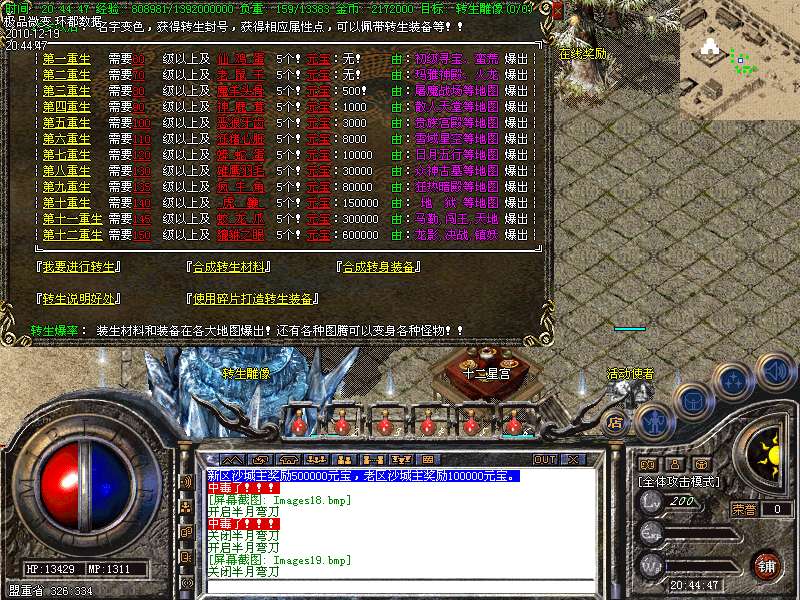 【更新】增加12星座,每20分钟每个星座刷3只守卫,其中一只为真,杀死必爆1000元宝!!另外还增加12个专爆元宝地图!!