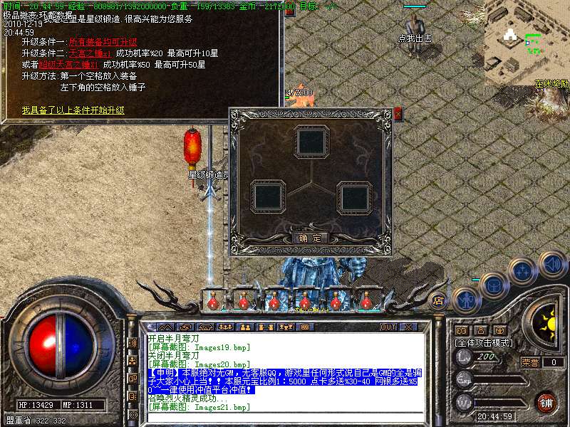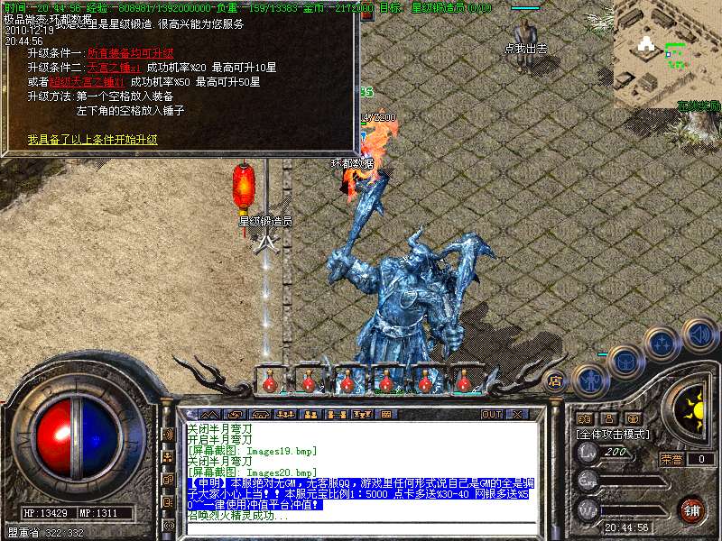 【更新】土城增加星级升级师,使用[天宫之锤]可以给装备升星!最高可升50星!