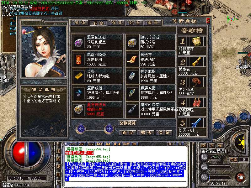 【公告】各个安全区自动喊话的NPC都是假的,系统喊话是红字和蓝字,所以请玩家特别注意不要上当.本服唯一客服无GM 会员命令为:@会员