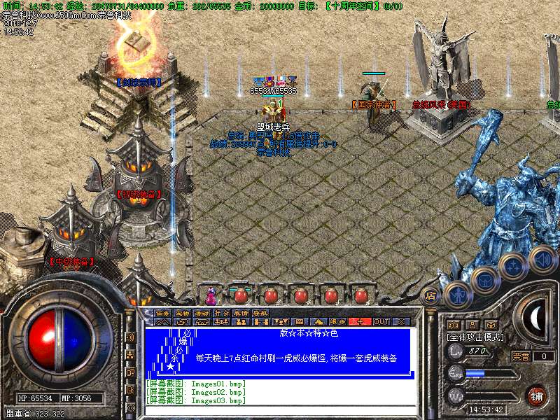 11.(☆) 沙城奖励█ 晚上10点〓 沙巴克皇宫内 █ 奖励300W元 宝 →