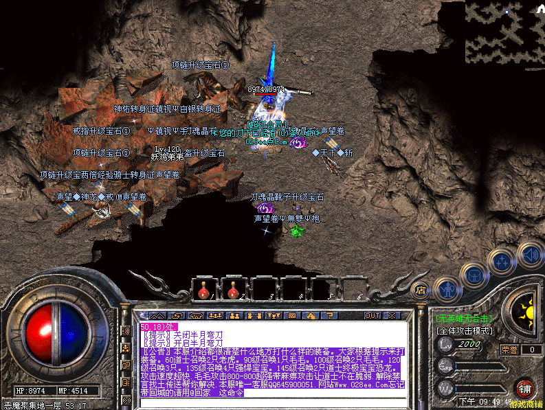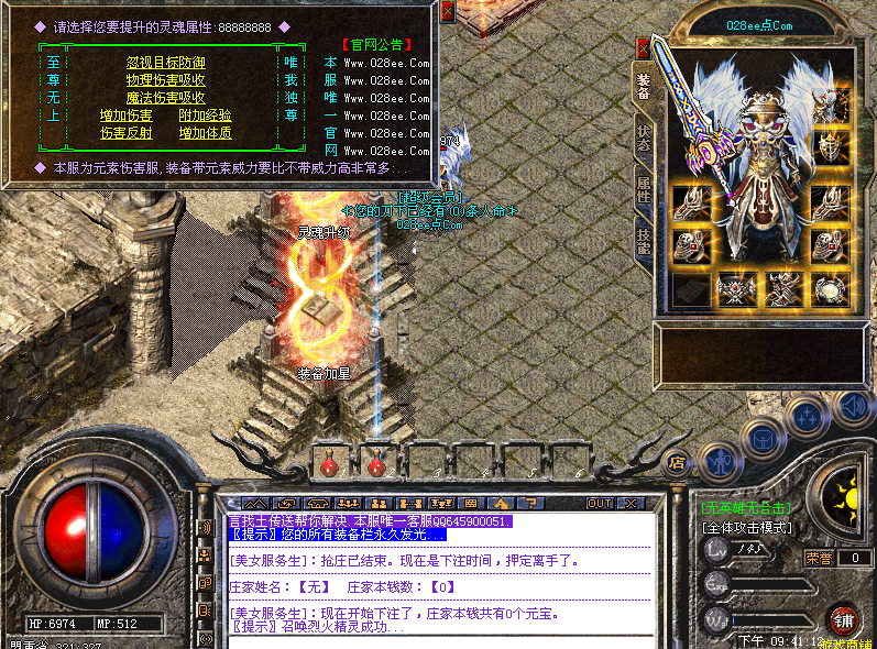 本服增加元素功能,具体性息请在土城查看NPC。忘记带回城的玩家可随地输入@回家 命令即可回城!
