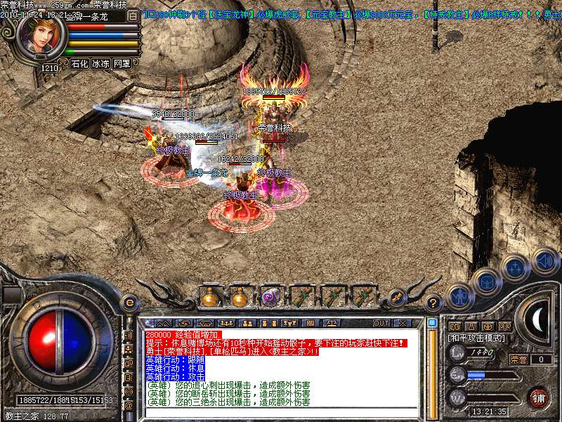 服装殿门口180钟刷3个怪【送宝龙神】必爆虎威套,【元宝教主】必爆2000万元宝,【特戒教主】必爆6样特戒!!!勇士们快快组队去吧!!!