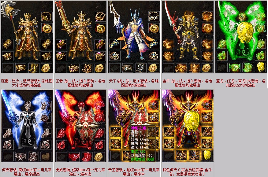 1:险恶地图爆本服基础装备,新手应该循序渐进。(狂雷、天下) 。