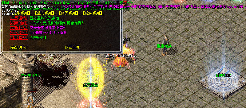 2:在行会服务处进入练级区域打怪。