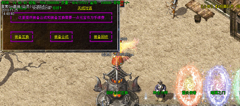 2:元宝传送地图爆本服中级装备。(王者、金牛,倚天)。