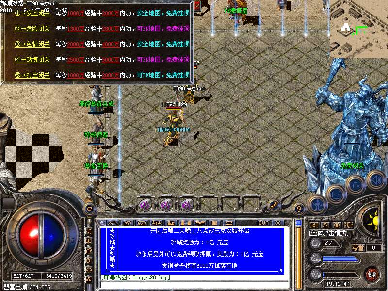 *╔─┬───────────────────────────╗│★│ 开区后第二天晚上八点沙巴克攻城开始 ││攻│ ││城│ 攻城奖励为:3亿 元宝 ││★│ ││奖│ 攻杀后另外可以免费领取押票,奖励为:1亿 元宝 ││励│ ││★│ 贡银被杀将有6000万掉落在地 │╚─┴───────────────────────────╝