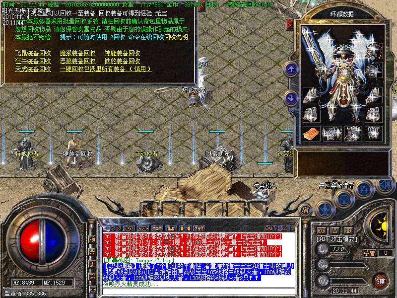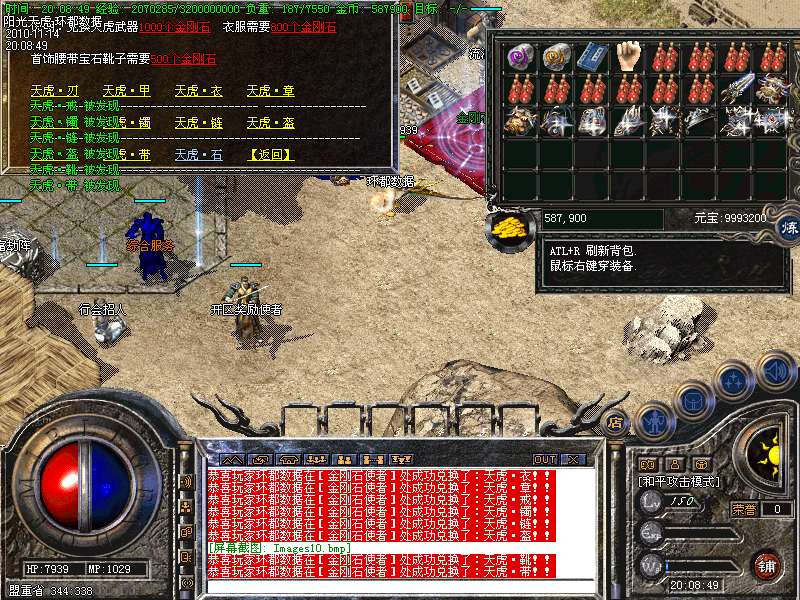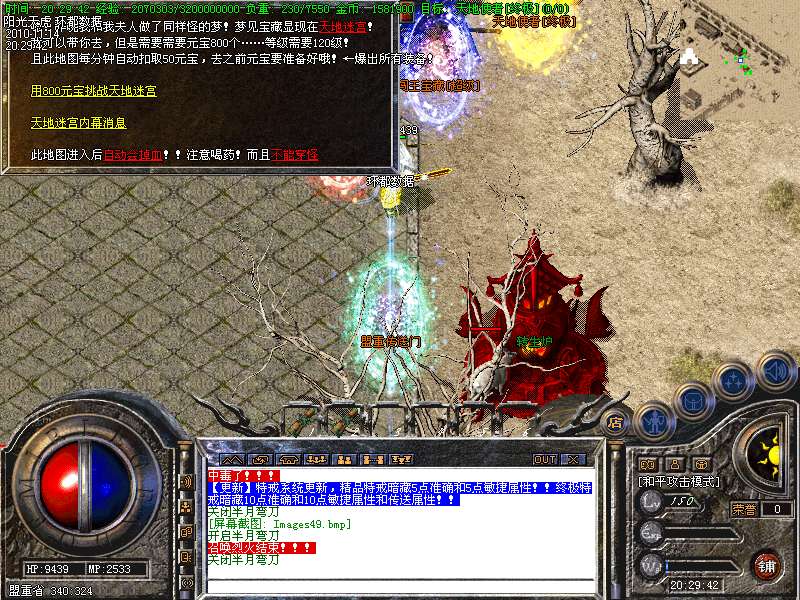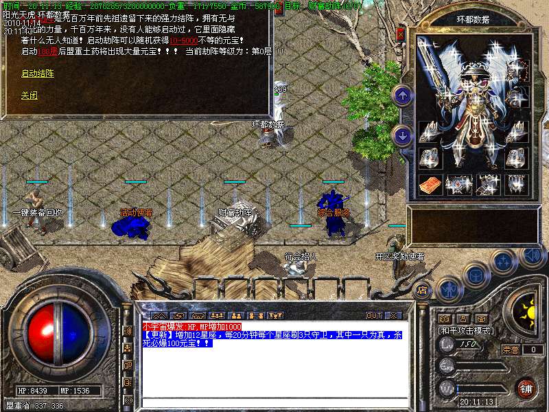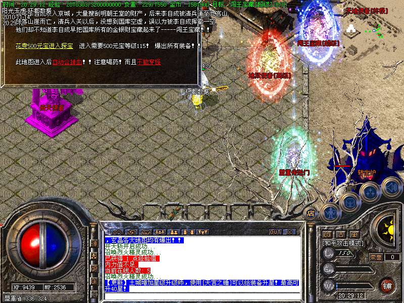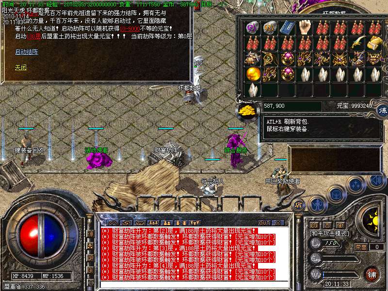 【更新】财富劫阵,BOSS爆出财富神石可以启动财富阵,启动的同时可以随机获得元宝!!满188层土药将会出现大量的元宝!!具体请查看土城财富劫阵NPC!!