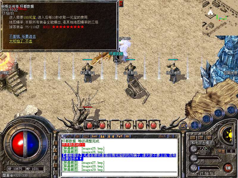 【元宝售价】:「短信1:100」「点卡1:150」「网银1:200」,在线充值请登陆本官方网站进行充值,充值成功后,到游戏[元宝充值NPC],领取元宝 [游戏本无价,购买自权衡。需求者千金不贵,无意者一分不取。