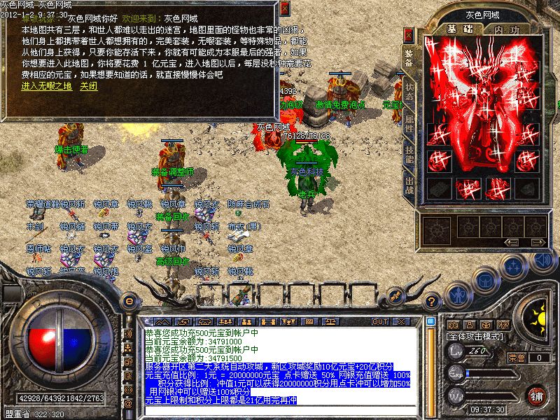新增【顶级狂爆城】【地下王国】【龙帝之墓】【完美之城】【无暇之地】【处男悲泣之地】【处女泪雨之地】【天意之地】此新增地图绝对可爆全服所有装备装备,包括特殊戒指和物品,此新增地图全部分为两层,第二层的爆率可比第一层高的多哦