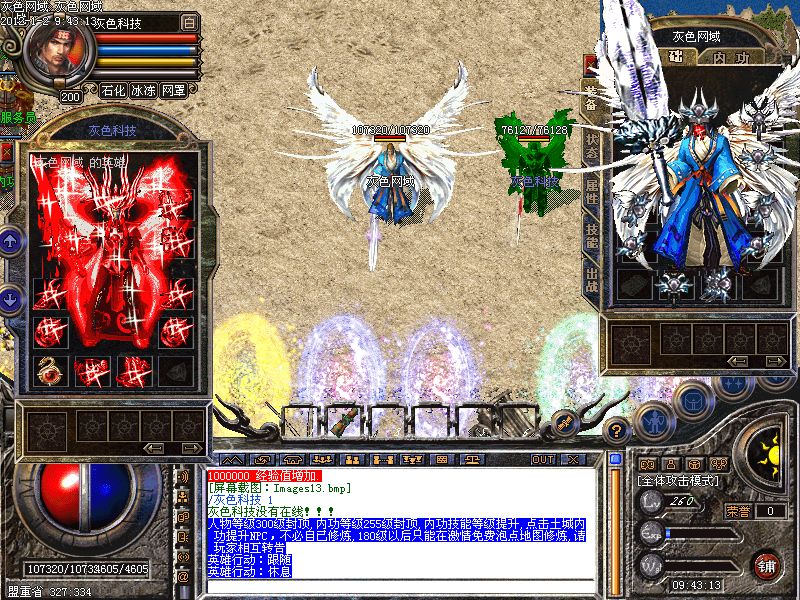 人物等级300级封顶,内功等级255级封顶,内功技能等级提升,点击土城内功提升NPC,不必自已修炼,180级以后只能在激情免费泡点地图修炼,请玩家相互转告
