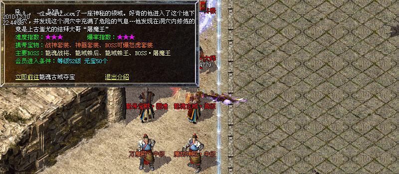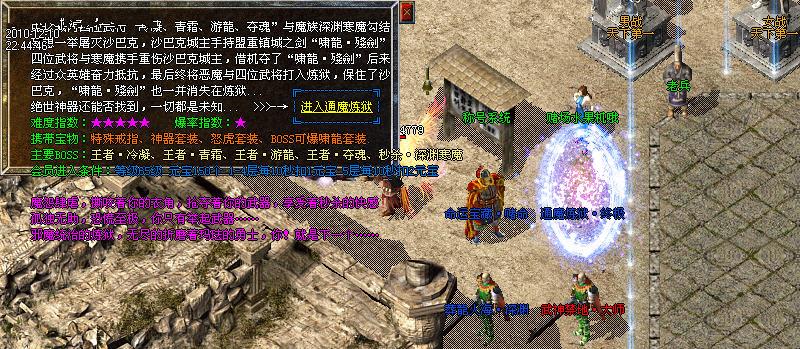 【装备评价系统】:游戏可的每一件装备,系统根据装备的等级,属性,都会作出一个评价并评分,玩家在更换身上的装备,系统会提示当前单件装备的分值及全身装备评价总分,同时,全服玩家的装备评价有排名,玩家可以通过点击游戏界面的对应按钮查看。一身极品装备,能让全服玩家羡慕!
