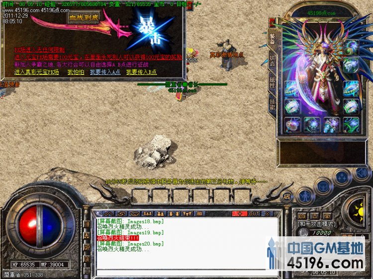 〖公告〗:激情真彩地图PK场.不但可以激情PK~还可以打到顶级装备!!!