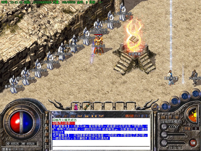 三.【特别地图】二级雇佣兵可进入盘古之地,1-3层为练级地方.最深层一小时刷一只盘古之王.一只火龙神.四级雇佣兵可进入烟花之地.刷新时间为60分钟