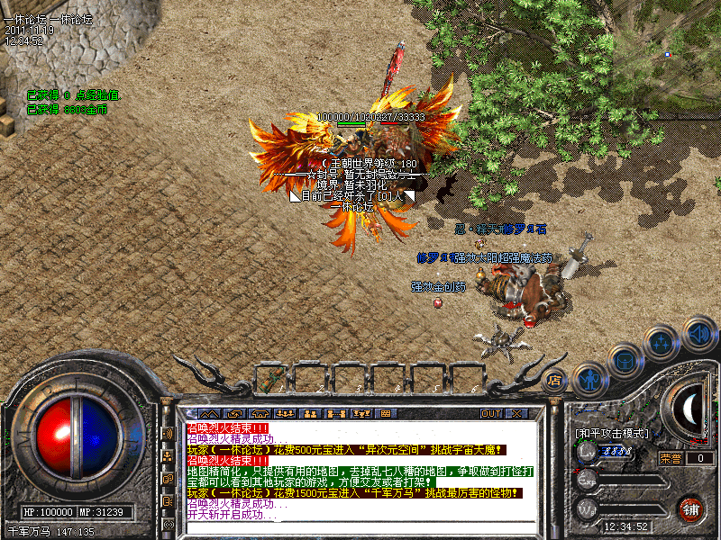 羽化就是大家常见的转生,本站一共九次转生,满转可获得6600点属性点,还有珍贵的【王朝圣水】,是PK中必须的物品!