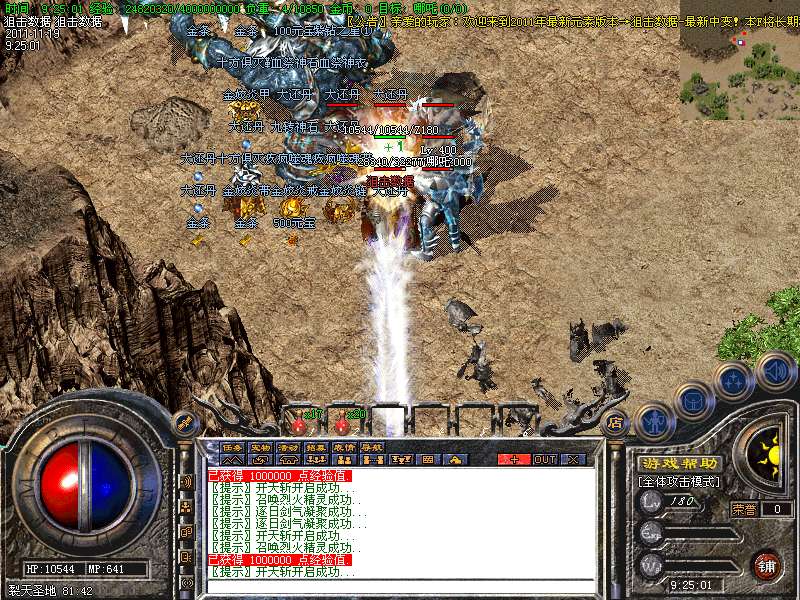到新地图打BOSS除了可以直接爆元宝外还可以爆装备回收 本F装备回收价格高并且爆得多!