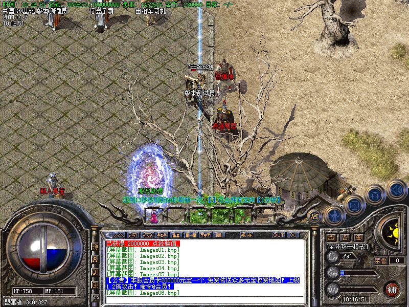 【公告】:老区攻沙每天一次,每次奖励100W元宝,新区攻沙奖励300W元宝+极品装备!