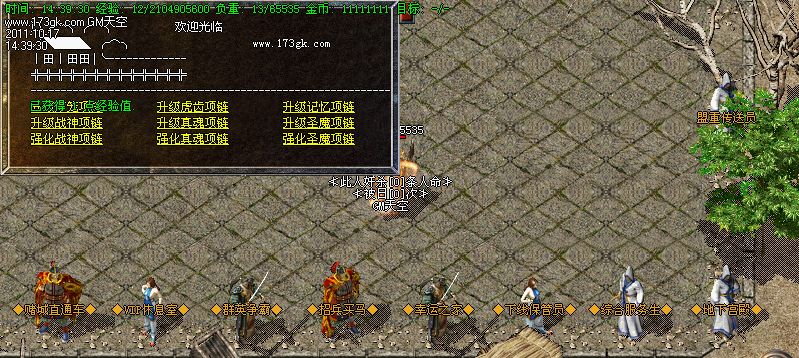 战士增加开天斩.道士增加飓风破 47级召唤神圣白虎.法师流量火雨横扫千军.