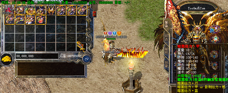 初级装备:疯狂打宝,高级打宝,难度递增,怪物爆率高,爆出传奇、特戒等