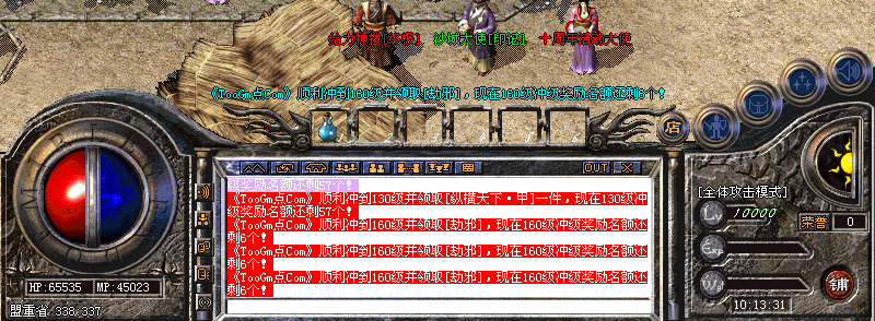 模拟攻城:全服100以上玩家才可以进入,下午15,晚上19点各一场,再现千人攻城场面,杀死守卫及城主,获得不同数量元宝,即杀即得